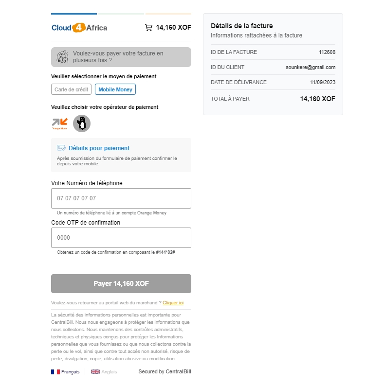 La description détaillée du flux de paiement pour CentralBill offre une vision approfondie des étapes impliquées depuis l’initiation d’une transaction jusqu’à la confirmation de la réussite du paiement. Voici un aperçu complet du processus :