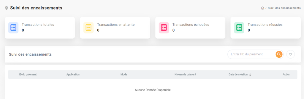 CentralBill offre des fonctionnalités avancées pour la recherche et la visualisation des transactions, y compris la gestion du suivi des encaissements. Cette fonctionnalité permet aux utilisateurs de suivre un paiement qui peut être réalisé à partir de plusieurs moyens de paiement distincts. Voici comment effectuer la recherche et la visualisation des transactions dans le système :